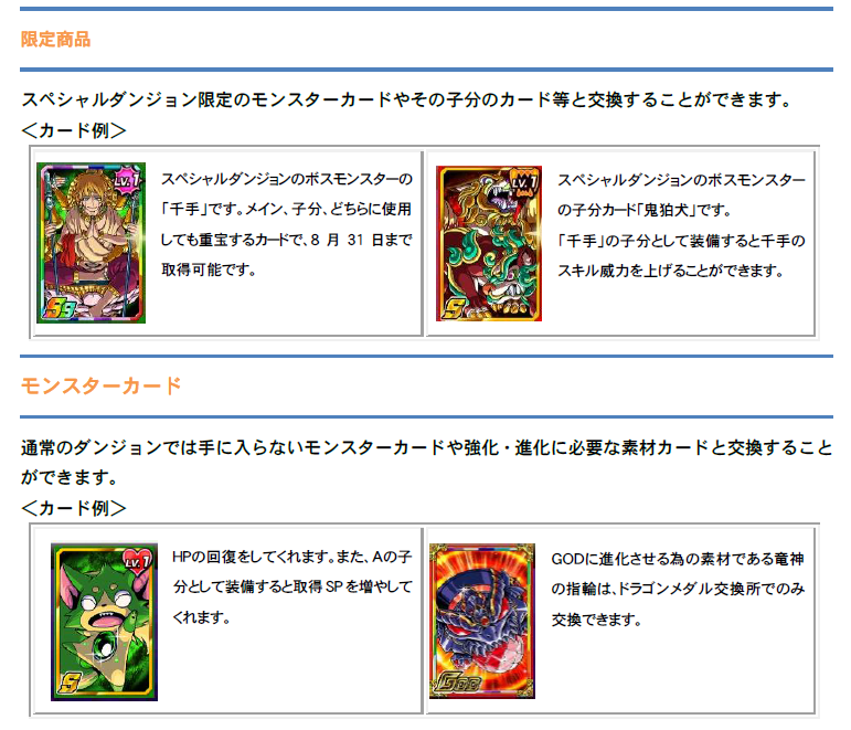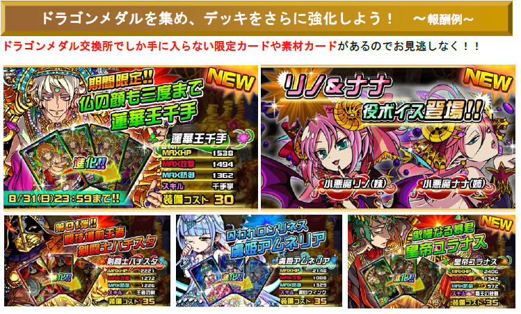 ドラゴンメダル交換所で強力なカードやSPスキルと交換することができます。