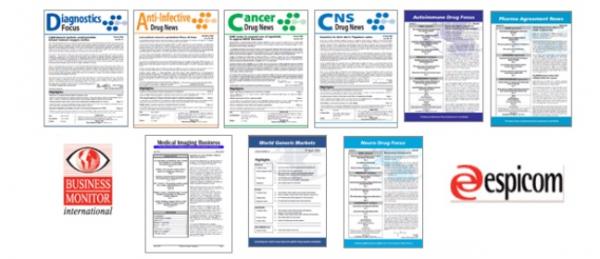 また、御来場いただきましたすべての方に、医療機器および医薬品の2つの分野に特化したビジネスインテリジェンスサービスのプロバイダーとして高い評価を得ている英国の調査会社Espicom(2013年よりBusiness Monitor International社の傘下)の各テーマ別ニューズレターの最新issue(下記一例)を無料にて提供しております。