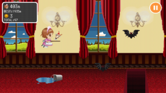 コウモリ、落とし穴、水たまりをタップ(ジャンプ)で避けながら、