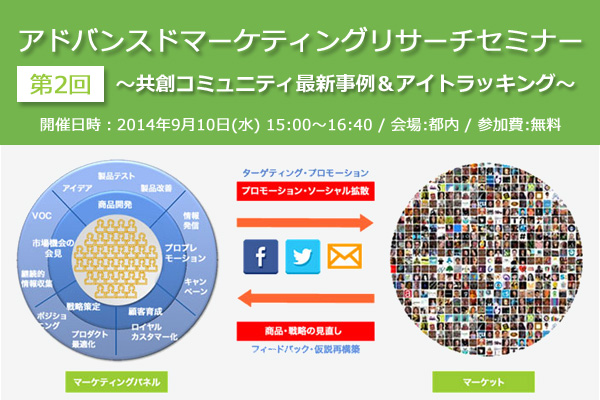 マーケティングリサーチサービスを提供する株式会社マーシュは、共創コミュニティを運営する株式会社コントロールエム、株式会社コントロールエーと共同で『第2回アドバンスドマーケティングリサーチセミナー~共創コミュニティ最新事例&アイトラッキング~』を、2014年9月10日(水)に開催いたします。
