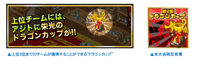 ょう。見事、上位入りしたチームには、報酬としてドラゴンカップ等を獲得でき、アジトにチームの栄