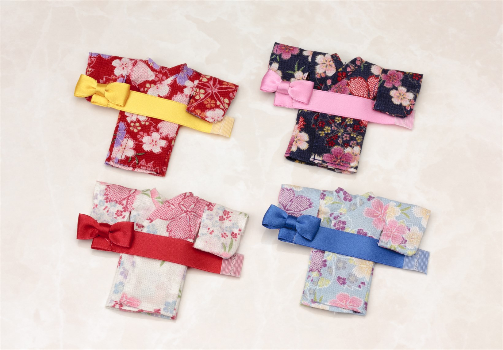 色・柄は全部で4種類。セットで付いてくる「帯」もそれぞれ異なる色となっています。