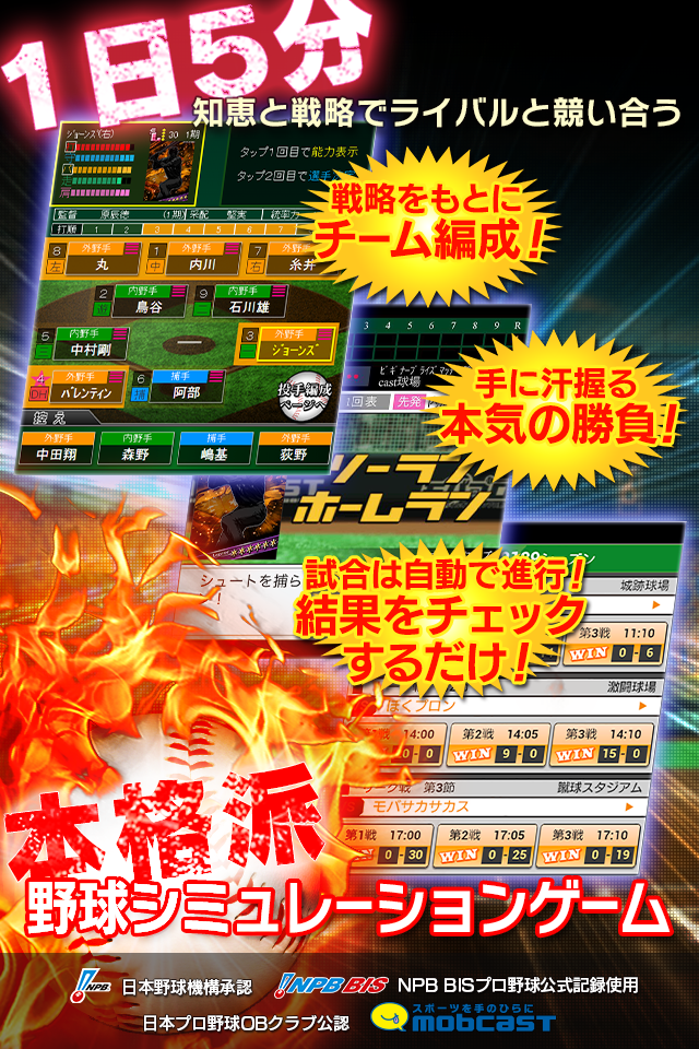 『モバプロ』は、“一日5分で楽しめる”をコンセプトに、現役・OB選手が実名、実写で登場する本格プロ野球シミュレーションゲームです。その完成度と戦略性の高さは2011年のサービス開始以来、プロ野球ファンだけでなく、多くのユーザーのご愛顧を頂き、現在は会員数270万人を突破、今もなお増加を続けております。