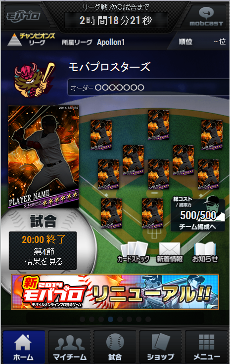 モバイルゲームプラットフォーム「mobcast」(http://mobcast.jp/)の運営を行う株式会社モブキャスト(本社:東京都港区、代表取締役:藪考樹)は、「mobcast」にて配信中のモバイルオンラインプロ野球ゲーム『モバプロ』(http://bb.gmpa.jp/)を本日、大幅リニューアルしたことをお知らせいたします。