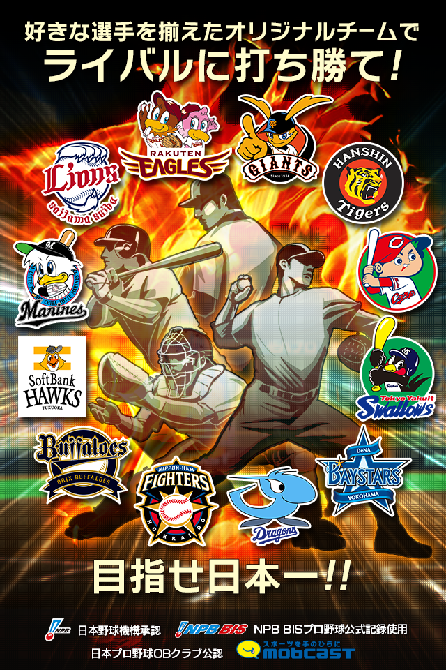 プロ野球全12球団の現役選手はもちろん、球史を彩った往年の名選手や、記憶に残るあの助っ人選手も登場!現役 対OB やチームメイト同士の戦いなどが実現可能。キミだけのドリームチームを育成できるプロ野球シミュレーションゲーム。
