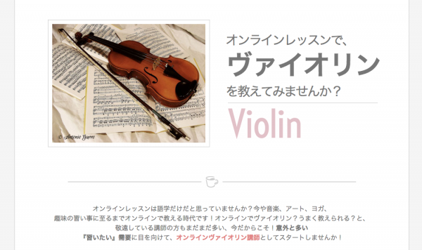 その流れを汲み、語学以外のレッスン、カテゴリを充実させるため、この度「オンラインヴァイオリン講師」募集ページをリリース致しました。