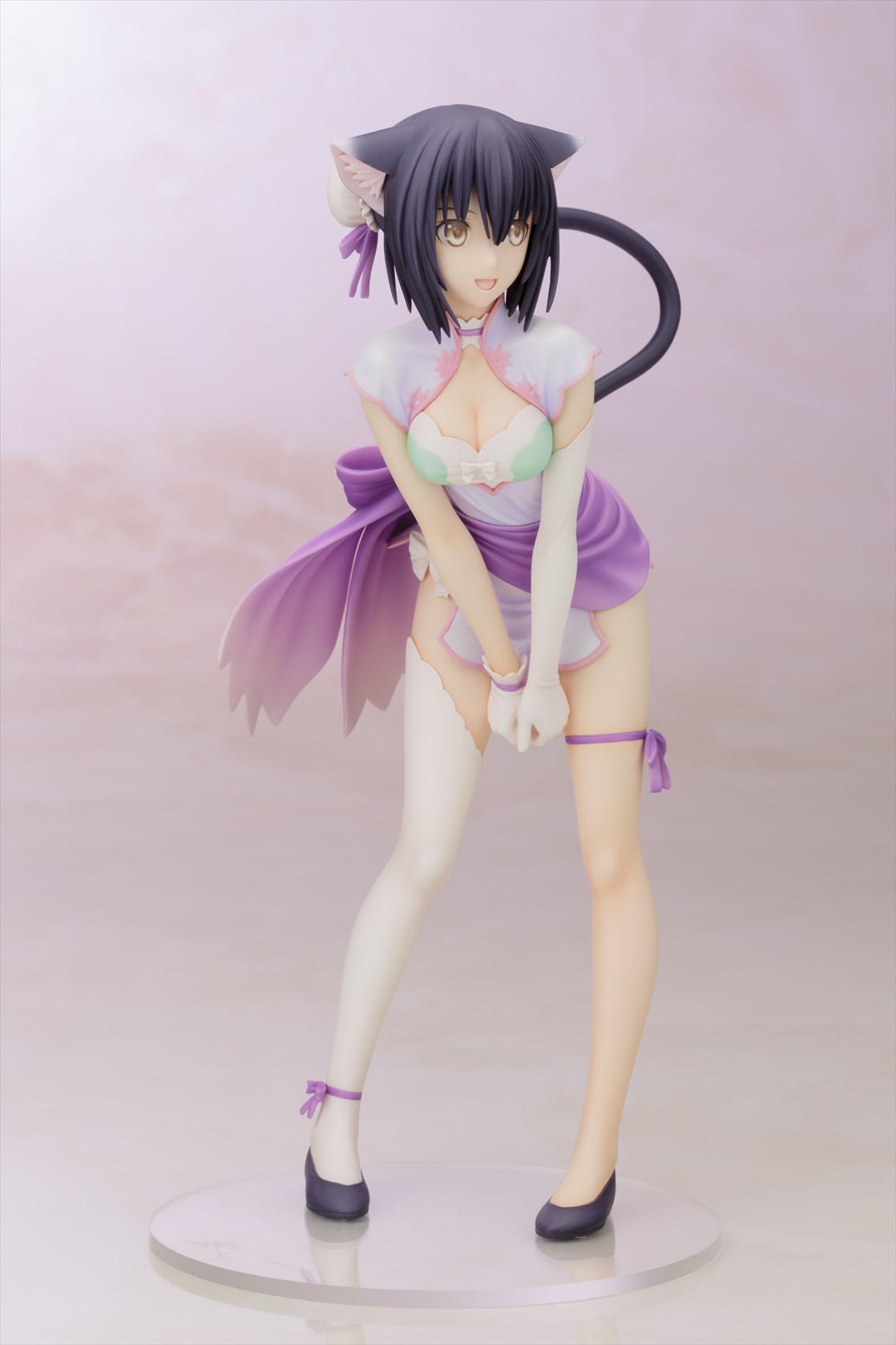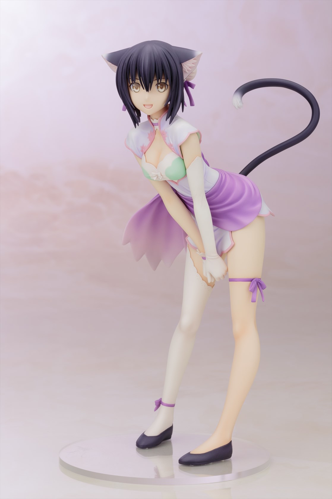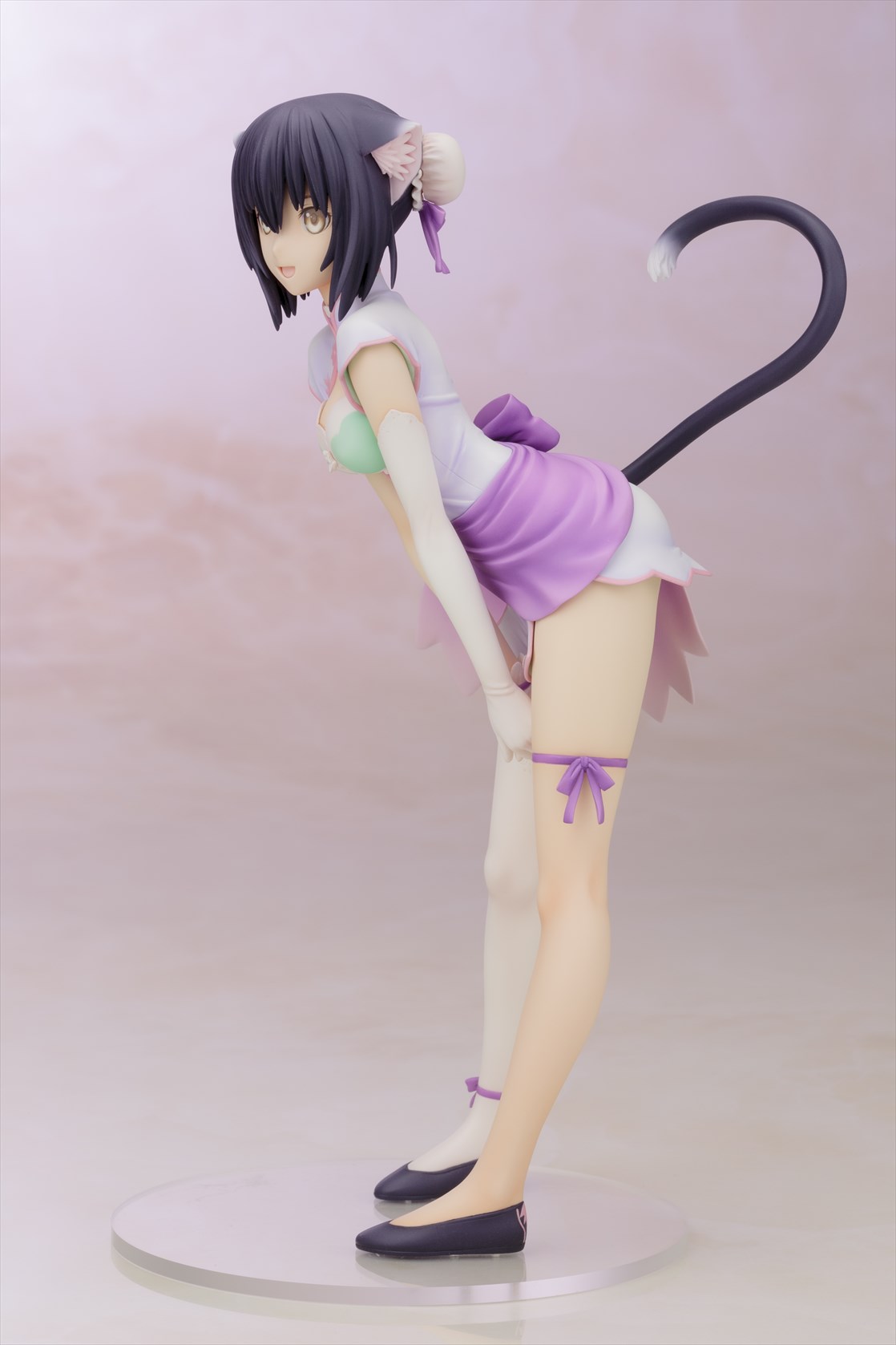 無邪気な幼い顔立ちとしなやかなボディラインが魅力のシャオメイは、ビジュアル設定資料集に収録されたラフイラストのポーズを基に、視線方向などはリンリンの造形との対比を考慮したアレンジを加えて造形。 同一人物ながら、少女と猫の2つの姿を一緒に並べられるというフィギュアならではの楽しみ方はもちろん、リンリンは台座に非固定のため、サクヤをはじめとする他の同スケールフィギュアと一緒に飾ることも可能です。 ご好評をいただいきました1/6スケール版「いたずら怪盗 シャオメイ」から2年半以上の時を経て、初の商品化となる1/8スケール版は、以前からリクエストの多かったファン待望のコレクタブルサイズのアイテムです!