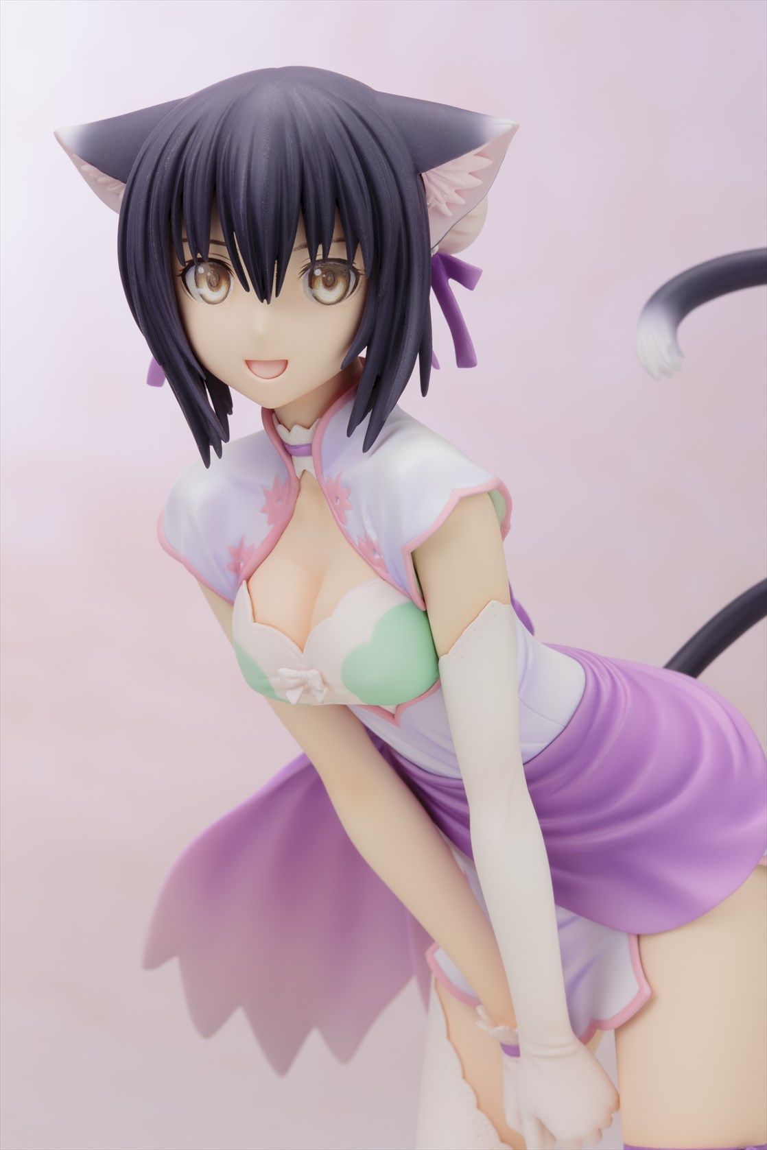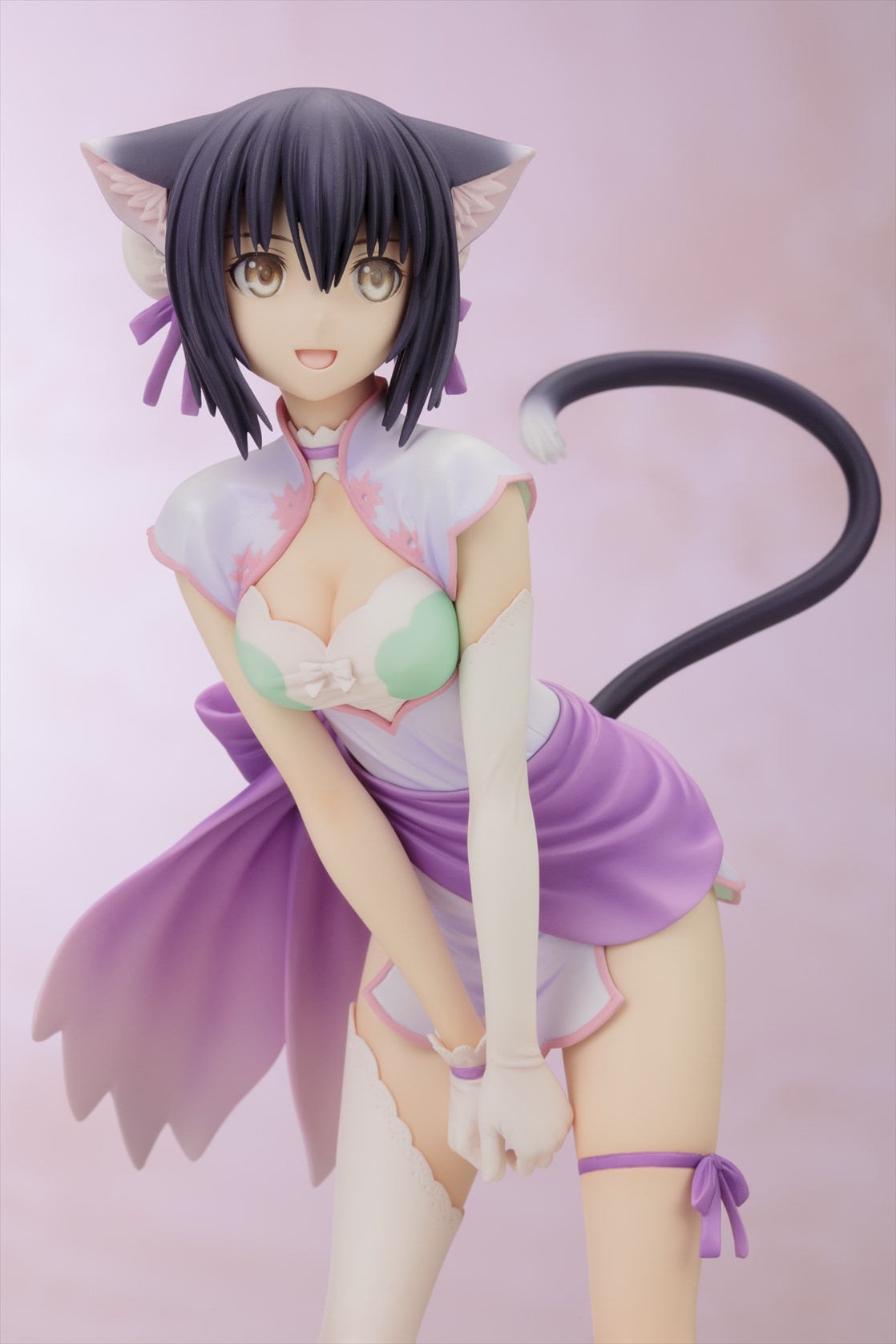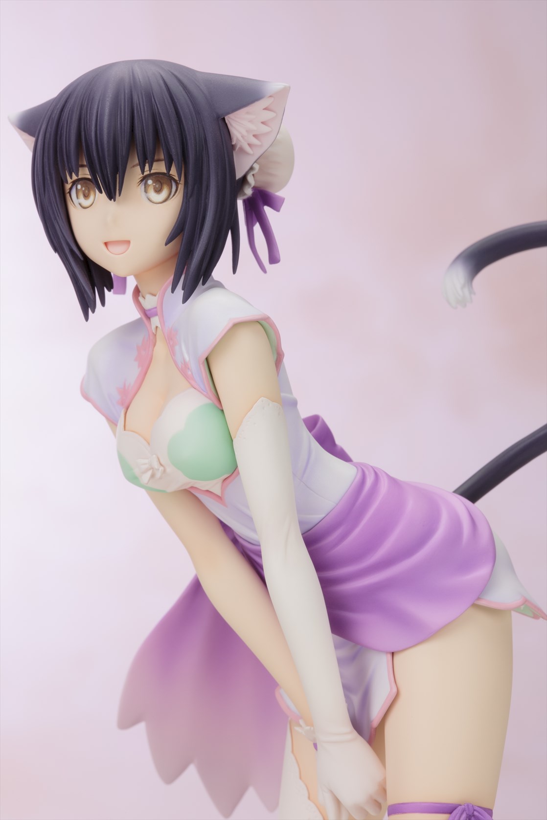 無邪気な幼い顔立ちとしなやかなボディラインが魅力のシャオメイは、ビジュアル設定資料集に収録されたラフイラストのポーズを基に、視線方向などはリンリンの造形との対比を考慮したアレンジを加えて造形。 同一人物ながら、少女と猫の2つの姿を一緒に並べられるというフィギュアならではの楽しみ方はもちろん、リンリンは台座に非固定のため、サクヤをはじめとする他の同スケールフィギュアと一緒に飾ることも可能です。 ご好評をいただいきました1/6スケール版「いたずら怪盗 シャオメイ」から2年半以上の時を経て、初の商品化となる1/8スケール版は、以前からリクエストの多かったファン待望のコレクタブルサイズのアイテムです!