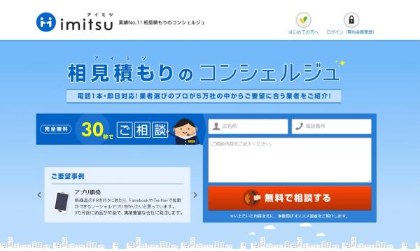 imitsu(アイミツ)は、ユニラボとリブセンスが2014年2月に共同運営を開始したBtoBのビジネス比較・発注サイトです。現在、IT・情報システム、営業・マーケティング、バックオフィス・総務、専門家などビジネス上必要な約120カテゴリー、56,000社超の業者情報を比較・掲載し、日本最大級の発注業者データベースとなっております。発注先を探している企業担当者の「探す」「比較する」「見積もりする」「問い合わせする」「発注する」といった手間や時間を一気に効率化できる全く新しいサービスとしてご好評いただいており、開始からわずか半年でご利用企業数は約2,000社、発注総額は10億円を超えるなど、順調にサービス拡大しております。