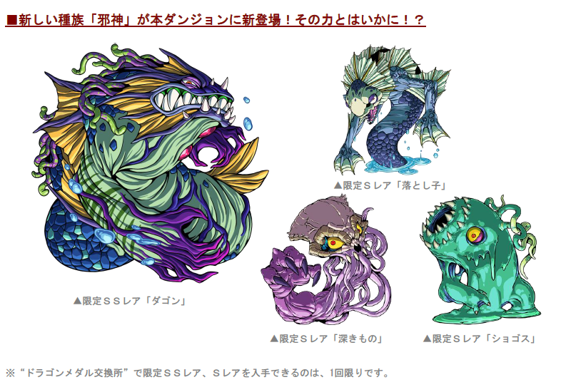 本ダンジョンに出現する、限定SSレア、Sレアモンスターは、期間限定で“ドラゴンメダル交換所”