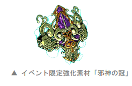 当ダンジョン限定の強化素材「冠」は、ダンジョンでカード化したり、“邪神P”を