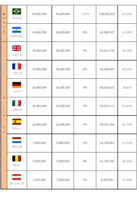 ・ 調査方法:フェイスブック社が各国に配信できるフェイスブック広告のリーチ数をもとに集計