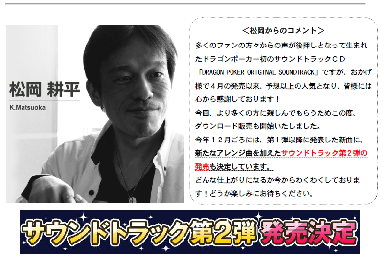 2014年4月に発売し、ご好評頂いておりますドラゴンポーカーのサントラCD