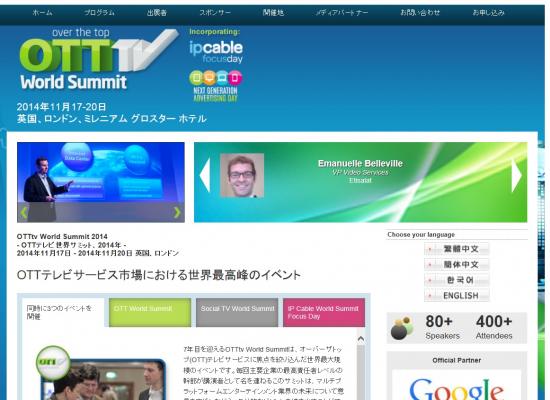 会議:「OTTtv World Summit 2014-OTTテレビ世界サミット 2014年」