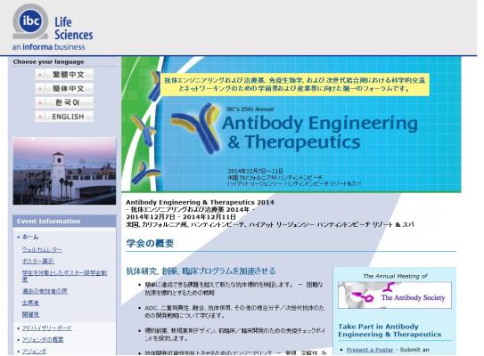 学会:「Antibody Engineering & Therapeutics 2014-抗体エンジニアリングおよび治療薬 2014年」