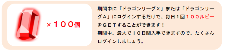 キャンペーン期間中に「ドラゴンリーグX」「ドラゴンリーグA」にログインするだけで、