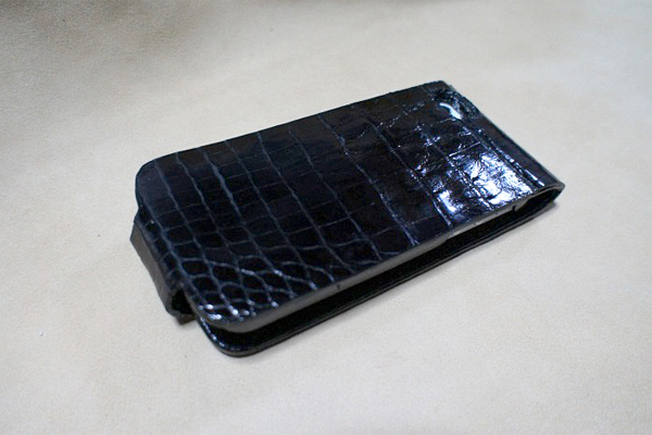 クロコダイルワニ革の高級革でスマホ用ケースを作成しています。