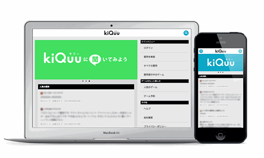 「kiQuu」は、iOSやAndroidで提供されるスマートフォンゲームの攻略情報を、ユーザー同士がQ&A形式で教え合うことや、同じゲームをプレイするユーザー同志で仲間の輪をつくり、よりゲームを楽しむためのコミュニティサービスです。スマートフォン、タブレットを始め、PCからも利用する事が可能で、ユーザーはゲームの攻略情報が知りたいときにいつでもサービス内で質問を投稿し、回答を集める事ができます。