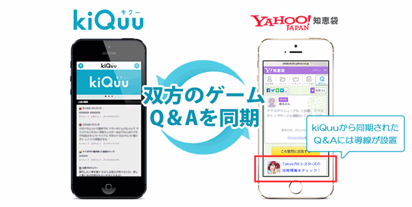 「kiQuu」と「Yahoo!知恵袋」のコンテンツ連携により、両サービスで投稿されたゲーム攻略Q&Aコンテンツはリアルタイムで同期され、両サービスのユーザーから回答を受け付ける事ができます。
