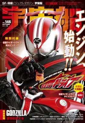 10月1日発売の「宇宙船vol.146」は、10月5日(日)スタートの『仮面ライダードライブ』を大特集!! 仮面ライダードライブ タイプスピードを撮り下ろし!! 最新ライダーのディテールのすみずみまで特写できるのは「宇宙船」だけ!! ほとんど「車型のスーツ」と言っても過言では無いドライブの緻密な造形を本誌だけの美しい撮り下ろしでご覧ください。キャストからは主人公・泊進之助役の竹内涼真さん、ヒロイン・詩島霧子役の内田理央さんの対談、そしてメイン監督を務める田﨑竜太監督にインタビューをお願いしました。これを読んでおけば、作品を数倍楽しくご覧になれます!!