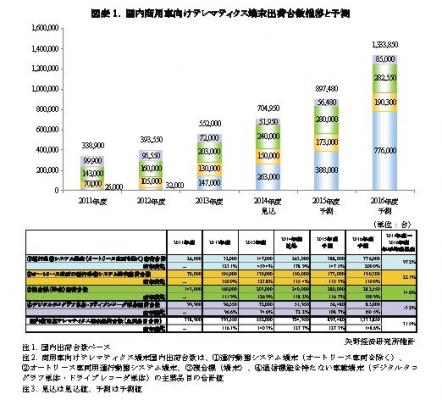 ◆国内商用車向けテレマティクス端末は順調に推移、2016年度には133万台を予測