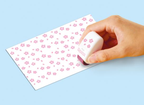 「いちめんデコルノ」は、印面幅1.5cmのミニローラーを連続してコロコロころがすだけで、年賀状やカード、ラッピングなどの背景をかわいくデコレーションできる「Decorno-デコルノ-」の新シリーズです。さくらやだるまなどのシンプルな図案が連続的に配置されているので、縦・横・斜めと自由自在にころがすだけで、紙や布“いちめん”に和ポップなテイストが広がります。独自の機構でカラーインクを内蔵しているのでスタンプ台は不要。手軽にデコレーションが楽しめます。