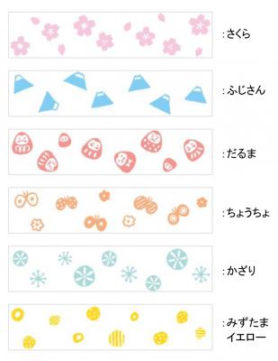 細かな柄までくっきり捺印する「デコルノ」ならではの技術を活かし、手作り感あふれるデザインにしました。やさしい雰囲気の 「さくら」和柄テイストのキュートな「だるま」、組み合わせて使うとかわいさUPの「かざり」「みずたまイエロー」など、あたたかみのあるほんわか和柄6種類をラインアップしています。