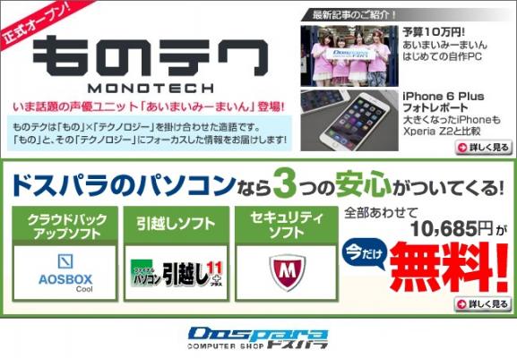 国内生産BTO(Build To Order)パソコンやPCパーツ、周辺機器を中心に、国内外の製品を豊富に取り揃える。http://www.dospara.co.jp/