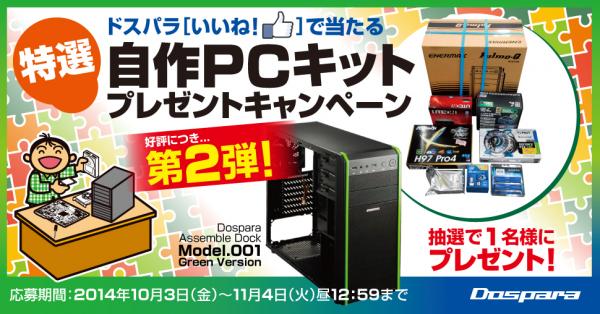 全国20店舗及びウェブ通販のパソコンショップを運営する株式会社ドスパラ(代表取締役社長:尾崎健介、本社:東京都千代田区)は、2014年10月3日(金)より、