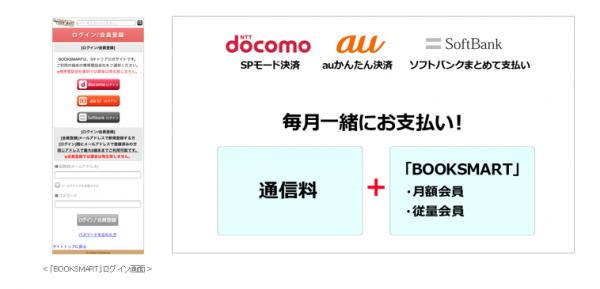 今般3キャリアの決済サービスに対応したことで、クレジットカードを持っていない方やクレジットカード情報の登録に不安を感じる方にも、ID・パスワード入力による電子書籍購入が可能となり、より多くのユーザーに一層便利に「BOOKSMART」を ご利用いただけるようになります。