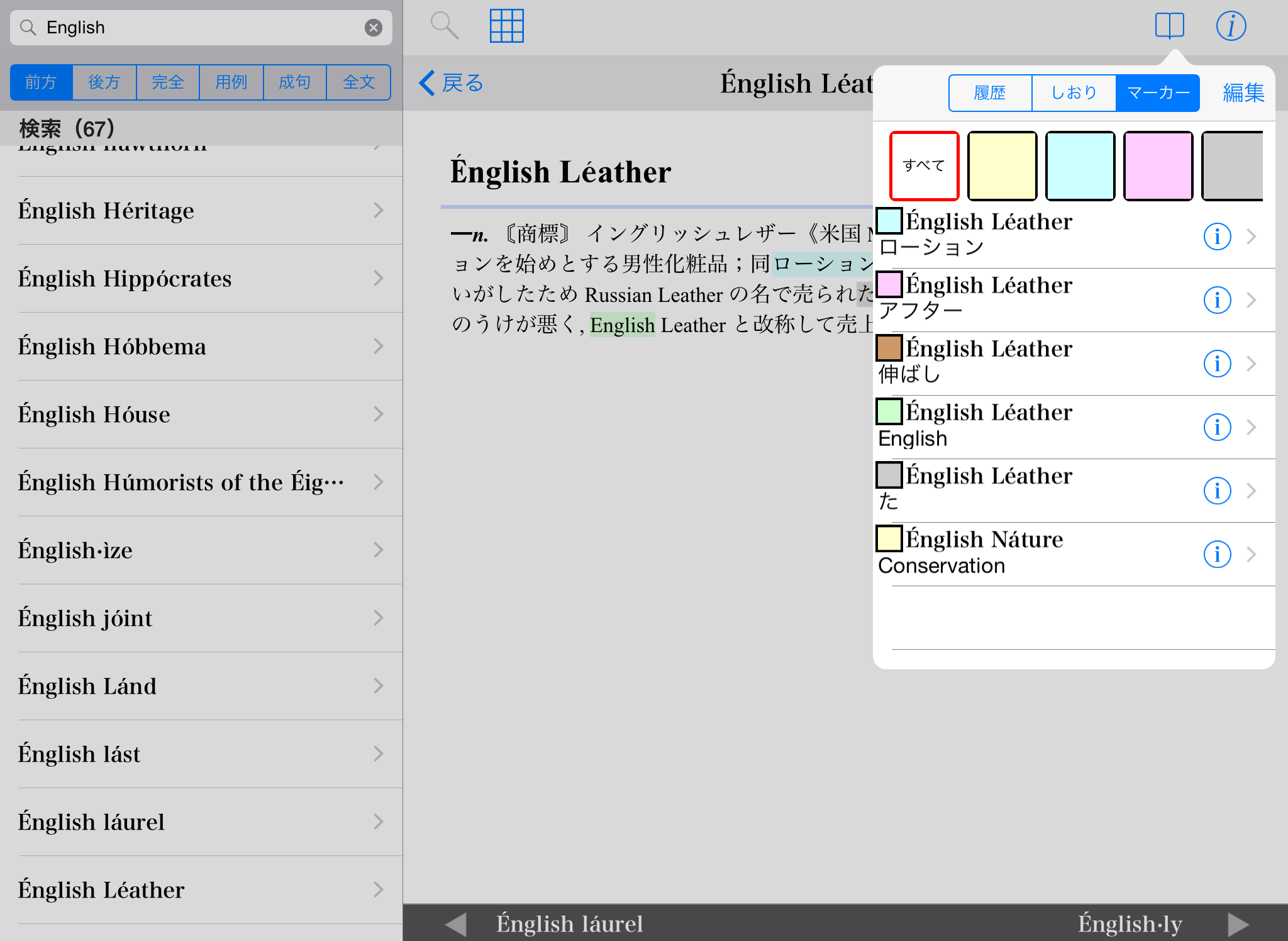 ●本文中の用語をなぞることで次々に辞書引きができるジャンプ検索機能。(*要iOS3.2以降)