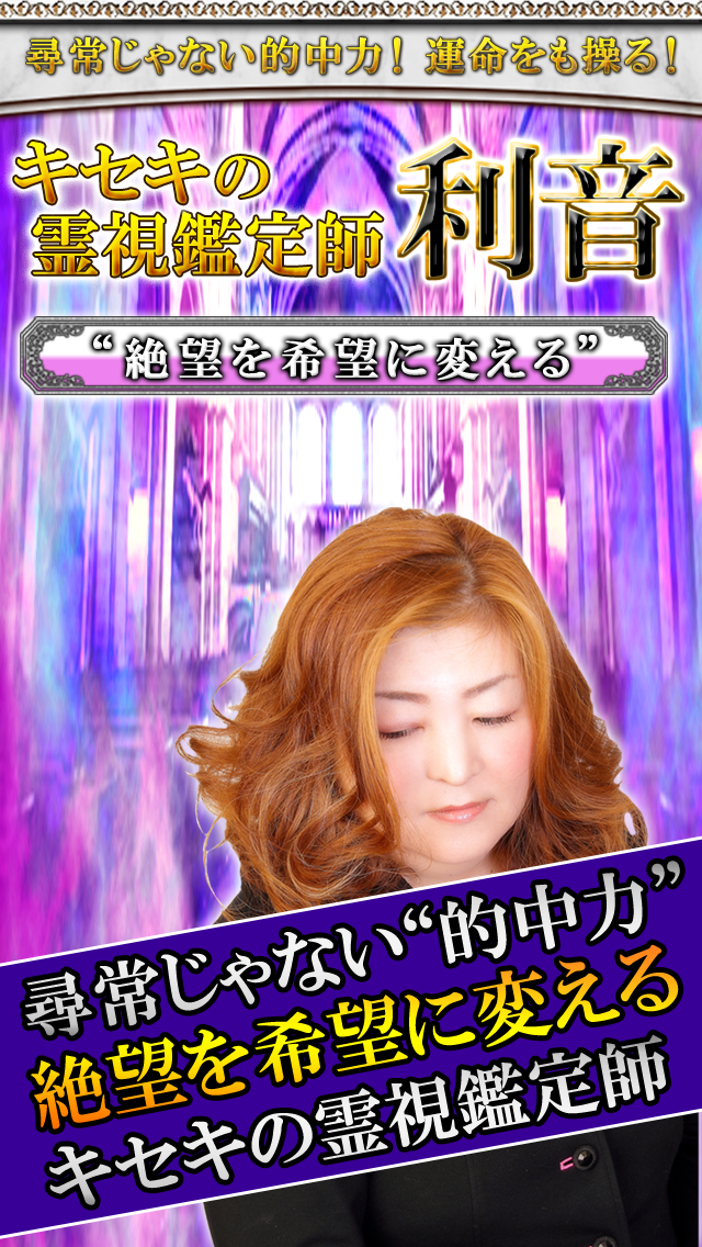 尋常じゃないほど暴かれ想像を絶するほど当たる! 恋愛は9割、復活愛は8割という高確率で成就させてきた“キセキの霊視鑑定師”【利音】のアプリが配信開始!