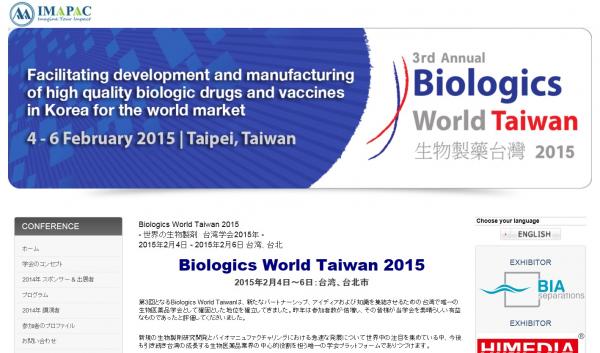学会:「Biologics World Taiwan 2015- 世界の生物製剤台湾学会2015年」