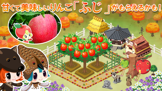 本イベントでは毎月ゲーム内でイベントを開催。同市にまつわるクエストのクリア報酬として円錐形土偶(国重要文化財)等同市オリジナルのデコレーションアイテムを配布いたします。また、ゲーム内で特定作物を育てると、抽選で同市特産フルーツ等を南アルプス市より毎月プレゼント。10月はりんご(品種:ふじ、6~7個入り※りんごの大きさによって数は異なります)を抽選で30名様にお届けいたします。また、提携イベントは2015年2月まで毎月開催いたします。