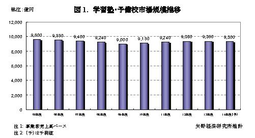 ◆2013年度 学習塾・予備校市場は前年度比0.2%減の9,360億円、