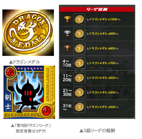 『ドラゴンリーグ』終了後のランキングによって、報酬「ドラゴンメダル」