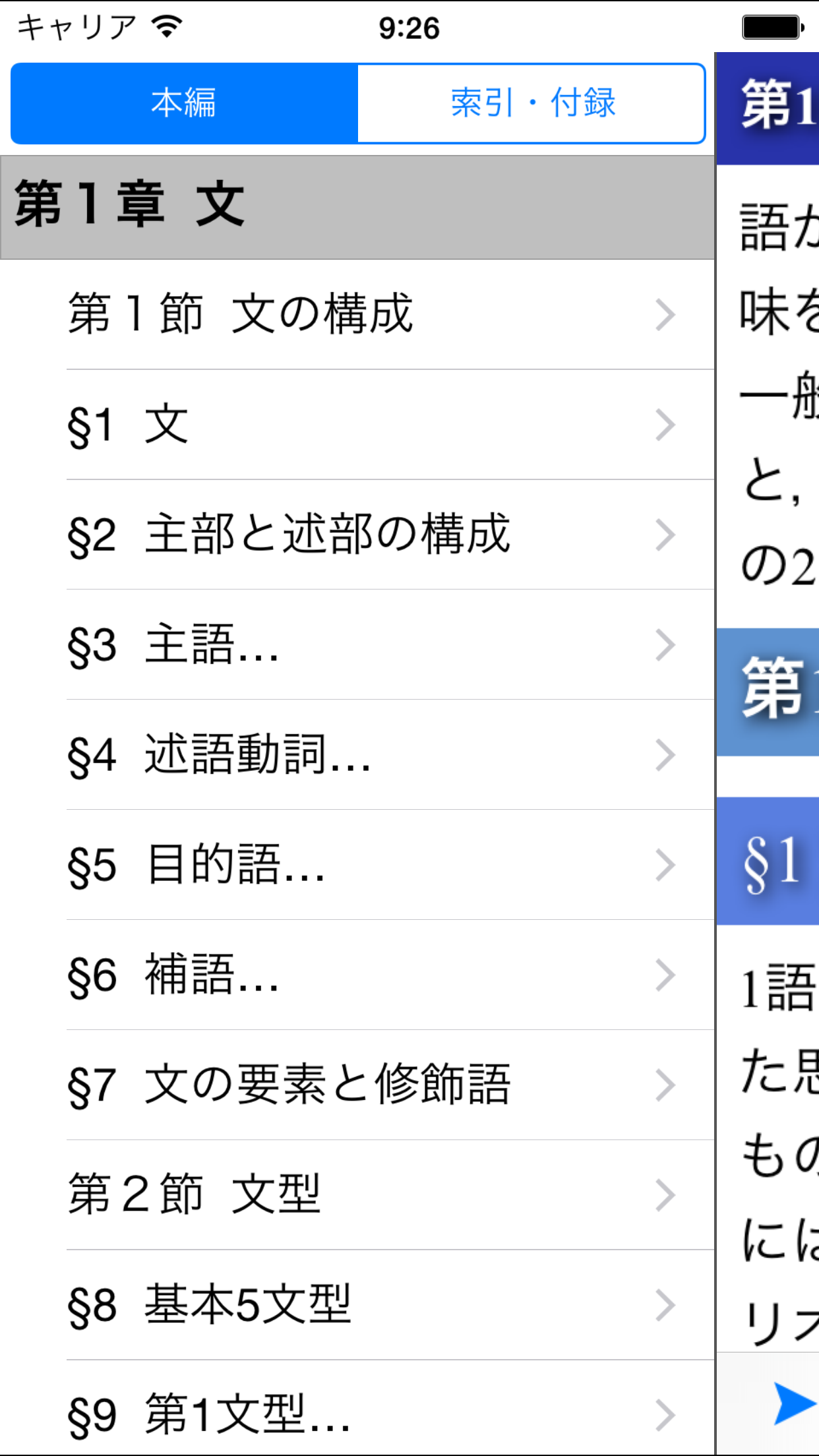 ・本編の本文内容はセクション単位での表示で分かり易くなっています。