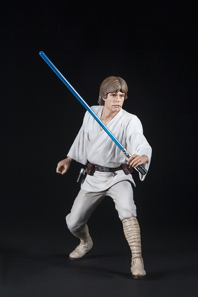 新作「スター・ウォーズ/エピソード7」でも出演が決定した旧3部作の主人公「ルーク・スカイウォーカー」、その妹「レイア・オーガナ」の兄妹を公開前の画像のポーズを元に、それぞれコトブキヤ初となるEP4登場時のコスチュームでの立体化です。ルークは差し替えでライトセーバーとブラスターの両方を楽しめます。足裏にはマグネットが入っているため、メタルプレート製ベースの上で自由度の高いディスプレイが可能。同シリーズのR2-D2 & C-3POやハン・ソロ & チューバッカと合わせてお楽しみいただけます。