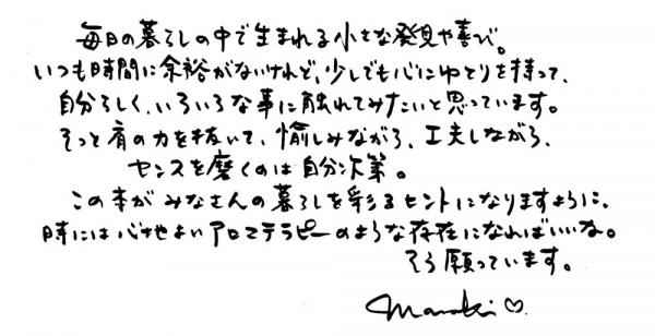 ◆『SENS de MASAKI』制作への雅姫さんの想い 直筆メッセージ◆