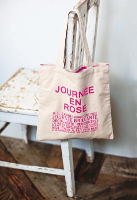JOURNEE EN ROSE(ピンク色の日)のロゴが描かれた厚地のキャンバス素材のトート。