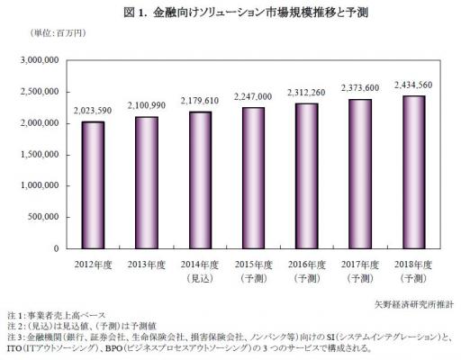 ◆ 2014年度の金融向けソリューション市場規模は、前年度比3.7%増の2兆1,796億円の見込み