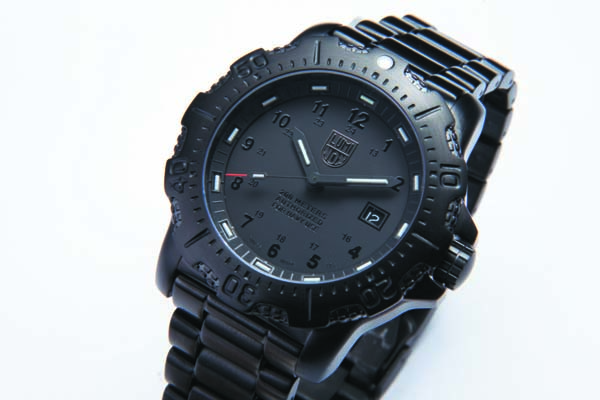 ●オールブラックのデザインは、よりタフなイメージを与えるだけでなく、ルミノックス・ライト・テクノロジーの発光を際立たせる。また、シックな雰囲気をまとい、プライベートでもビジネスでも多彩なシーンで活躍。