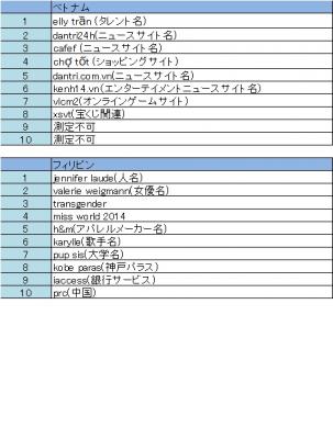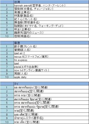 ・アジア11カ国の検索キーワードトレンド2014年10月7日~2014年10月13日2014年10月14日リリース