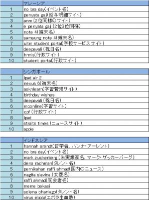 ・アジア11カ国の検索キーワードトレンド2014年9月15日~2014年9月21日 2014年9月22日リリース