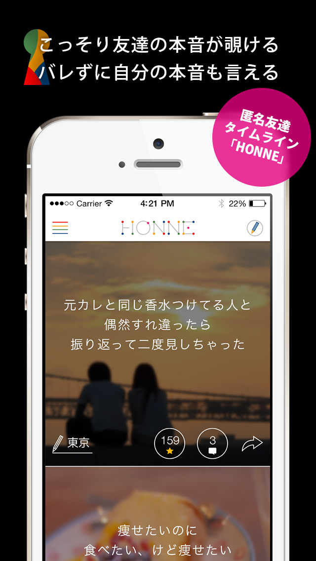 HONNEをさらに多くの人に楽しんで頂けるよう、今後も様々な機能を追加してまいります。