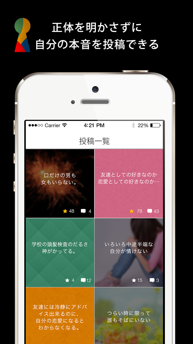 所属する学校や会社を設定するだけで、同じ学校・同じ会社の人の本音が見られるようになります。