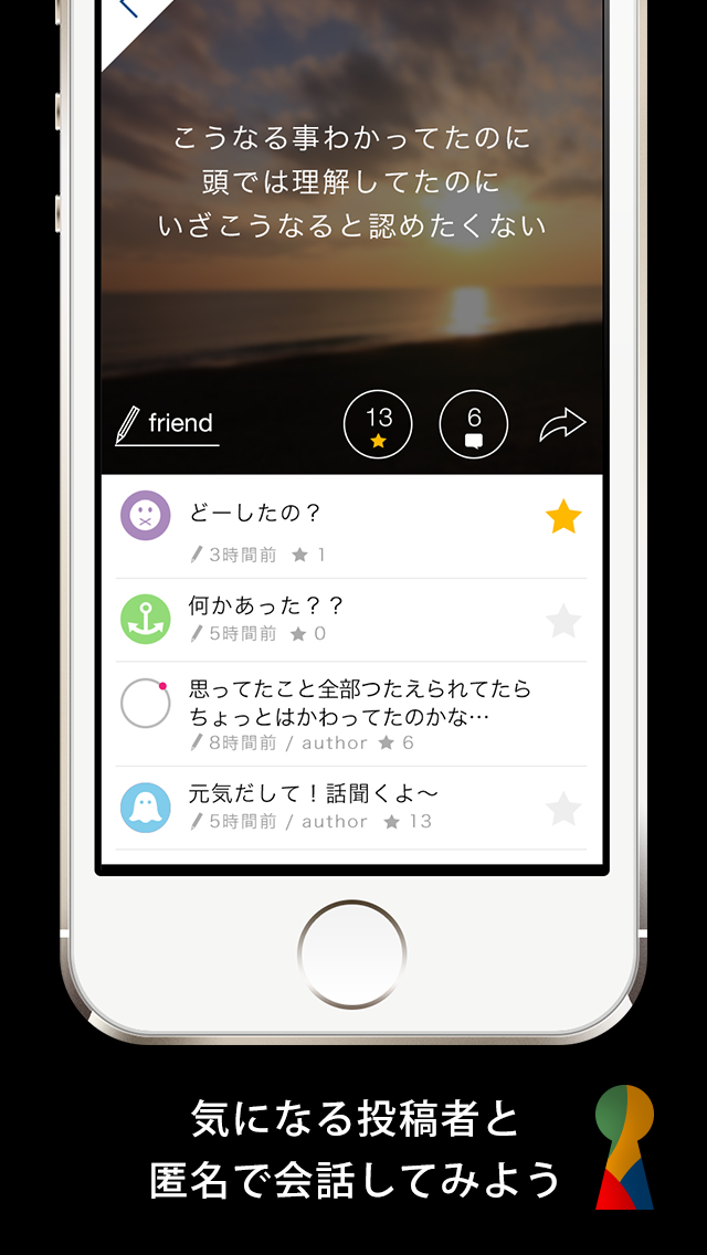 直近では、近くにいる人の本音やFacebook上の友達の本音が見られるタイムラインを追加予定。また、投稿毎にコメントができる人の範囲を設定できるように変更致します。
