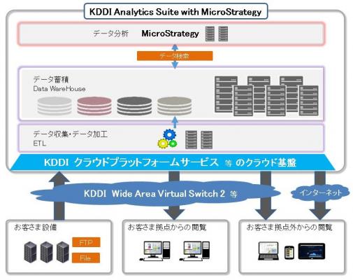 KDDI株式会社(本社:東京都千代田区、代表取締役社長:田中 孝司、以下KDDI)とマイクロストラテジー・ジャパン株式会社(本社:東京都千代田区、プレジデント:印藤 公洋、以下マイクロストラテジー)は、2014年10 月23日より、法人のお客さまのビッグデータ利活用を加速するクラウドサービス「KDDI Analytics Suite with MicroStrategy」の提供を開始します。