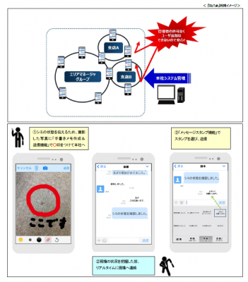 ■ メッセージスタンプ機能 ・・・ 「連絡下さい」、「お疲れ様です」等、業務で使う定型文のスタンプを収録