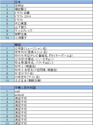 ・アジア11カ国の検索キーワードトレンド2014年10月7日~2014年10月13日2014年10月14日リリース